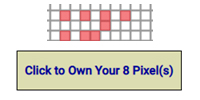 To purchase more than 10 pixels (example 20, 30, 100, or 1000), select multiple squares one at a time. Again, any squares not occupied can be chosen. Simply click a square, followed by another and another. You can also choose squares anywhere on the grid. The ‘Click to Own Your # Pixel(s)’ will continue to increase as you select varied squares.